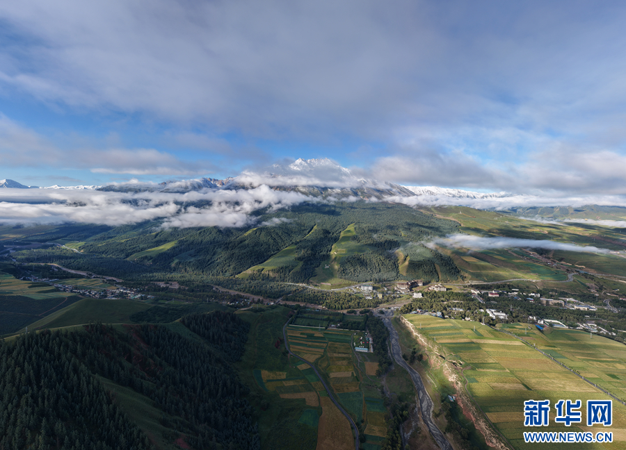 航拍祁连县城。新华网发(仁青多杰 摄)