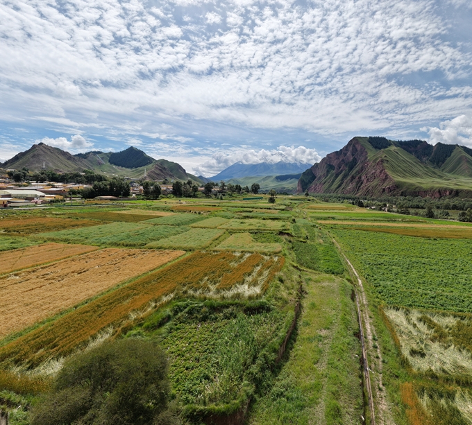 近日,在青海省海北藏族自治州祁连县9号公路沿线,秋日的色彩斑斓让这座小城充满温暖与生机。沿线麦田翻滚着金浪,村民忙碌的身影与斑斓的林海雪峰相映成趣,勾勒出一幅秋收画卷。这个秋天,来祁连自驾、登山、观景……