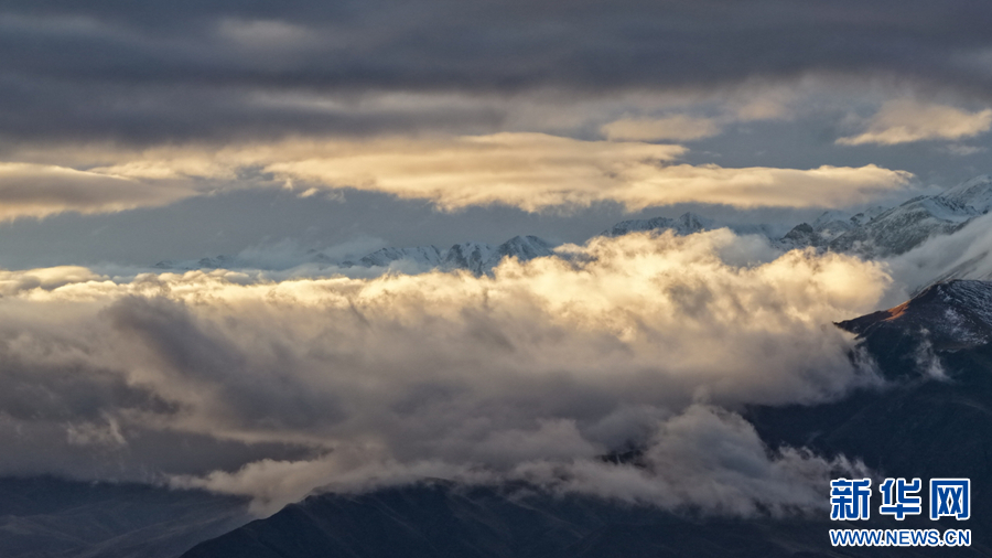 航拍云海里的祁连山。